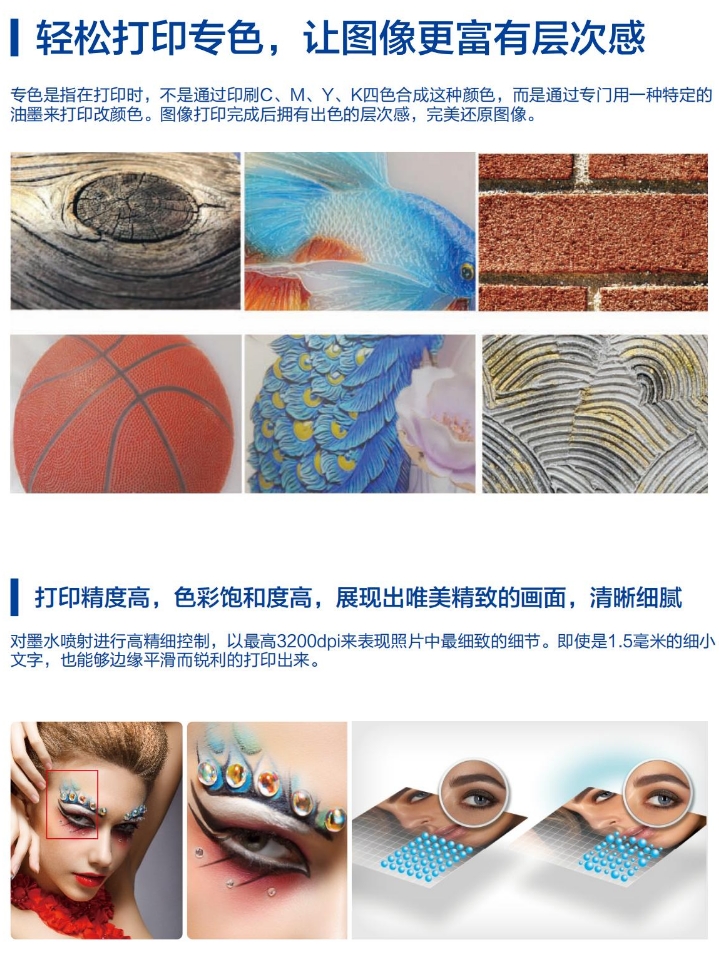 3.彩+白+彩3層出圖,完美呈現(xiàn)絢麗色彩。