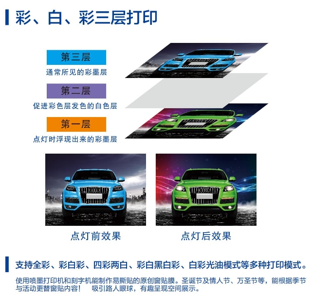 10.優(yōu)質(zhì)的圖像輸出,廣泛應(yīng)用于:燈片、透明膜、PET&PVC、超透等各類(lèi)廣告裝飾材料。