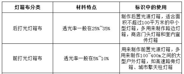 燈箱布是一種由兩層PVC和一層高強(qiáng)度的網(wǎng)格布組成的燈箱招牌面料,燈箱布按透光率和光源的位置,分內(nèi)打光和外打光兩種。
