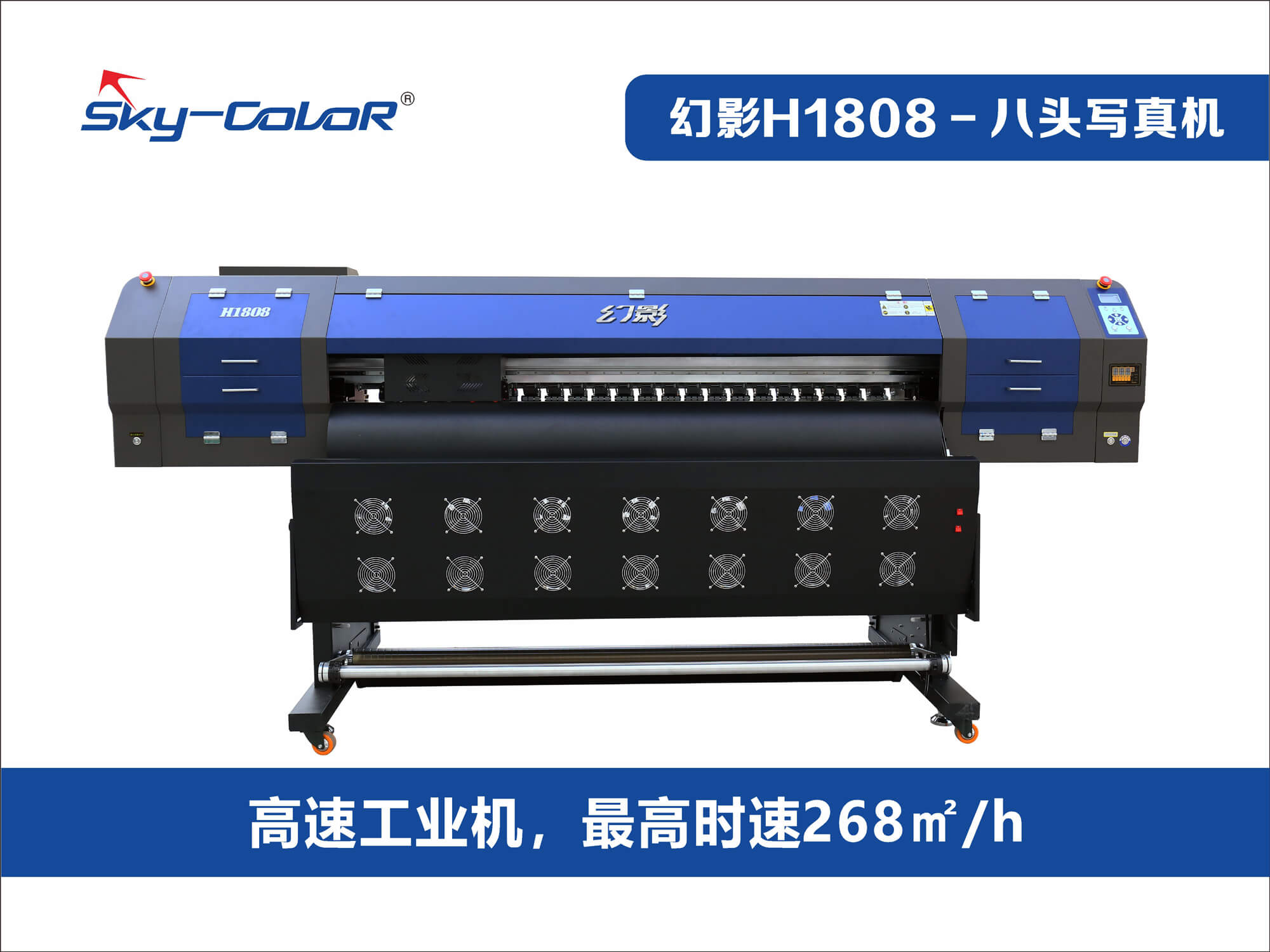 ? 打印幅寬1.8米,雙噴頭配置,一個打深色,一個打淺色,打印時速20㎡/h。