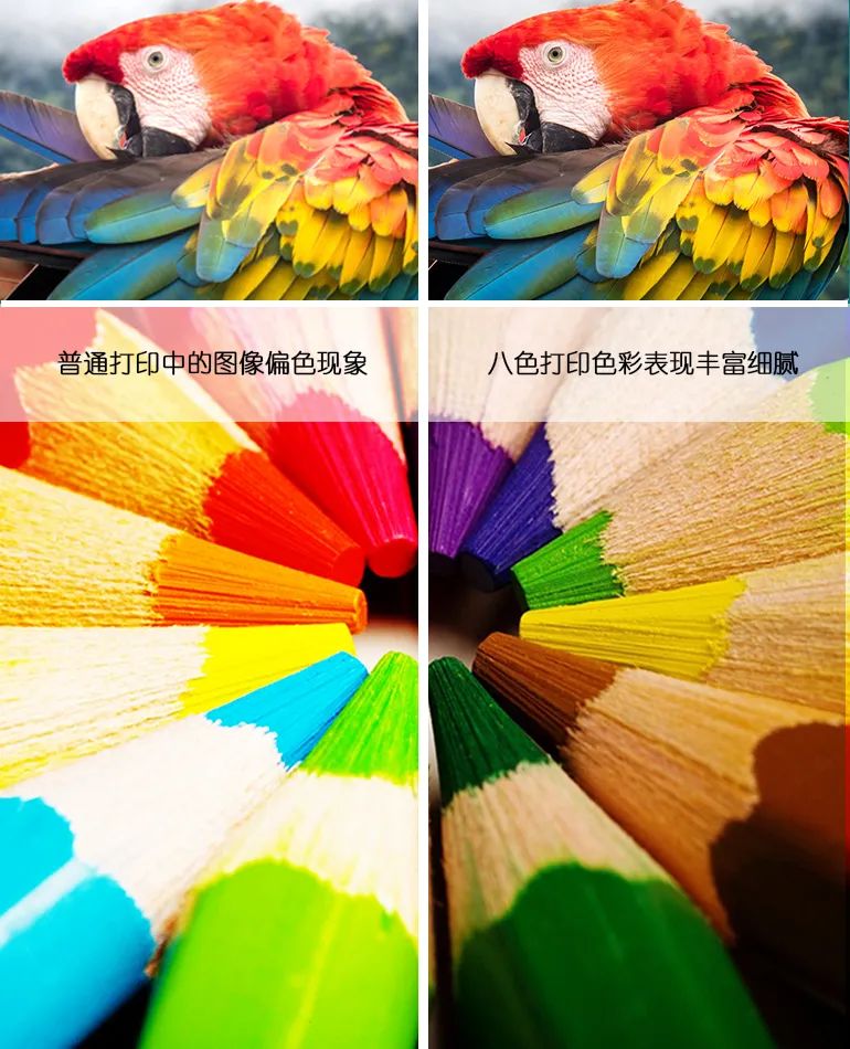 八色打印表現(xiàn)的色彩更豐富,層次感更強,色域廣泛,讓畫面鮮活逼真。經(jīng)專業(yè)打印鑒定,可輸出2000余種顏色,直白的說,它可以打印出肉眼可辨別的任何顏色,實現(xiàn)真正的“所見即所得”。
