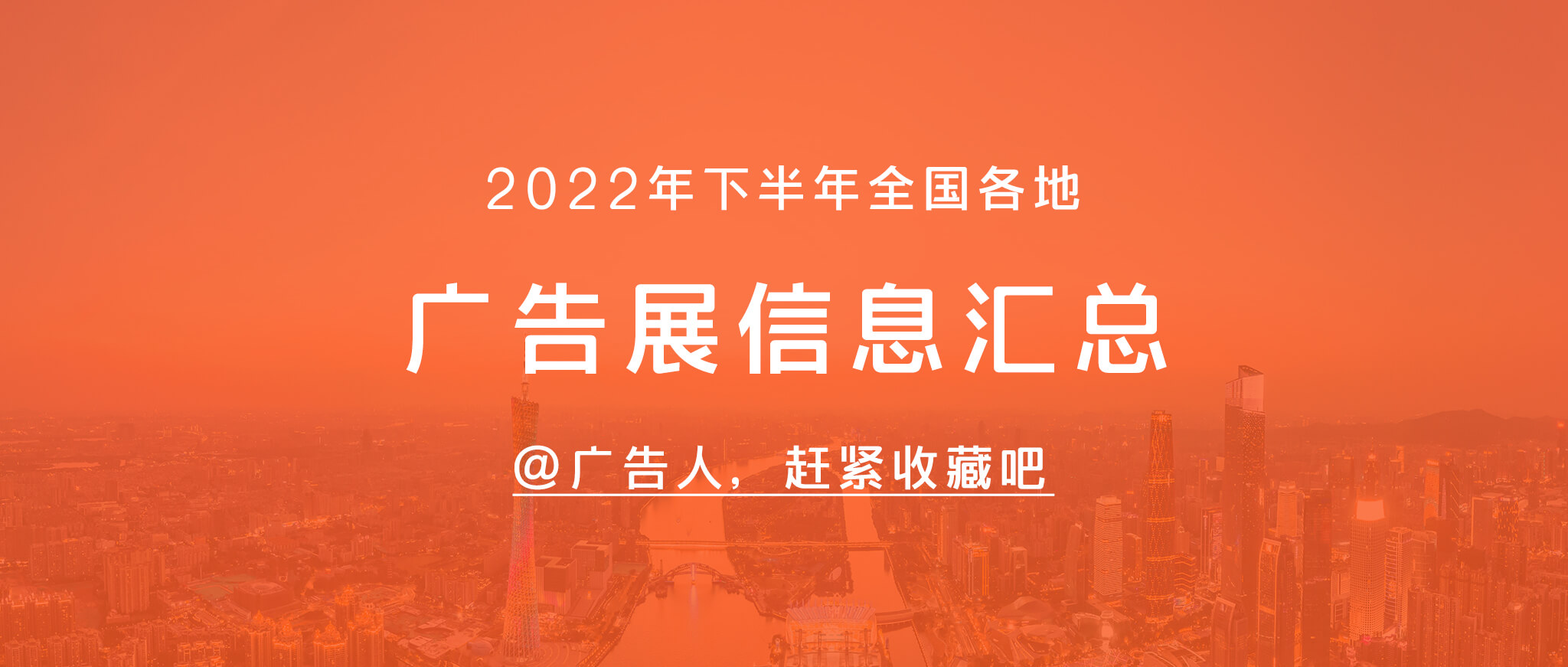 2022年上半年眨眼間就要過完了,在這期間,許多廣告展因為疫情原因都推遲到了后半年,今天小編給大家匯總了全國各地下半年的廣告展信息,廣告人,趕快收藏備用吧!