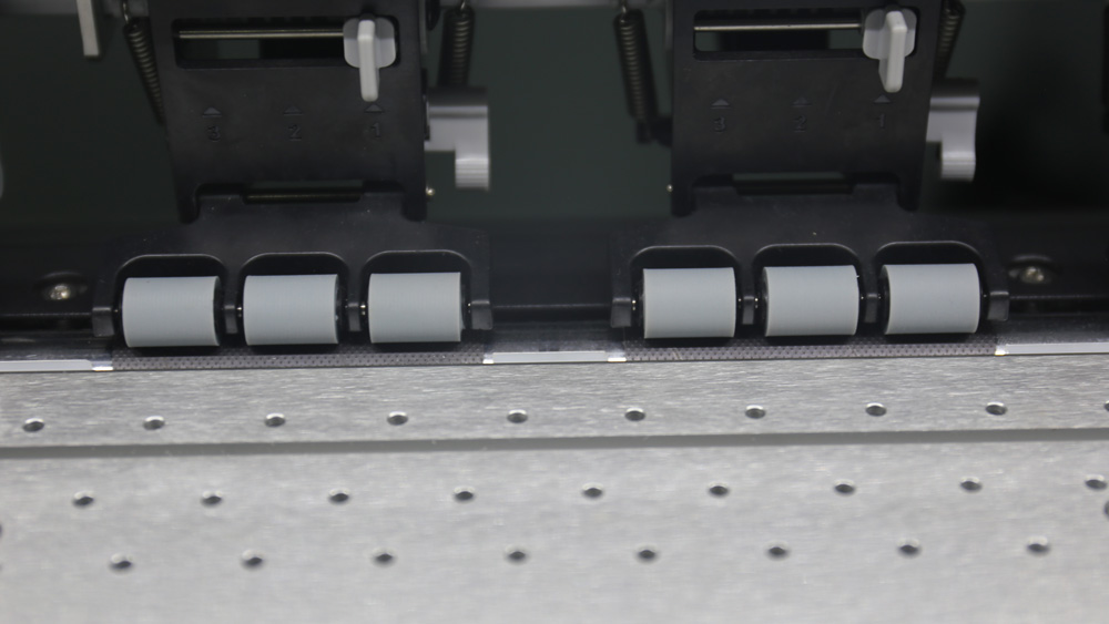 3、智能墨水液位實(shí)時(shí)顯示:操作界面實(shí)時(shí)顯示墨水液位情況,一旦打印過程中缺墨,機(jī)器會(huì)自動(dòng)暫停,設(shè)備智能提示及時(shí)加墨。5、壓輪壓力設(shè)置:在軟件中設(shè)置手柄行程,壓輪壓力自動(dòng)調(diào)整,精確匹配厚薄不同的打印材料,大大提高畫面尺寸精確度。