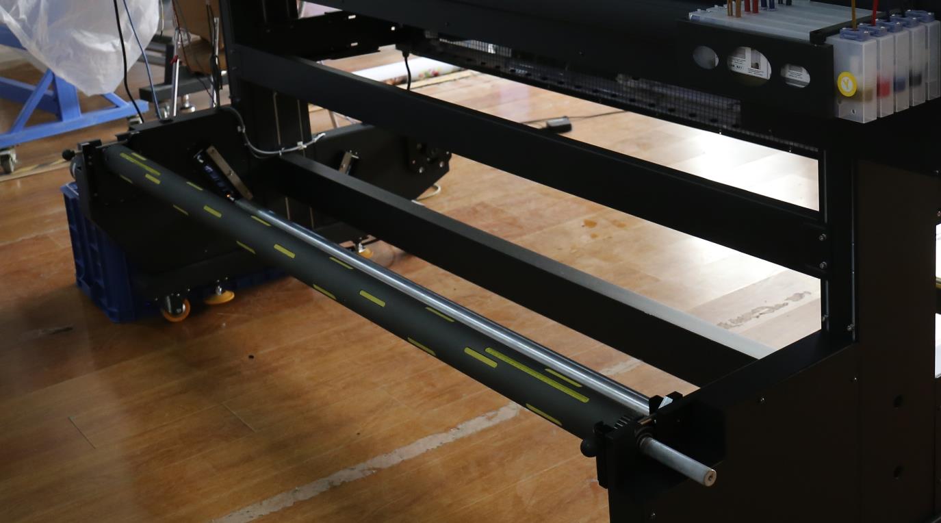 幻影H1標(biāo)配的是雙動力收紙系統(tǒng),另外為了適應(yīng)工業(yè)化加工需求,還可以選配氣脹軸收放系統(tǒng),適合大卷打印使用。
