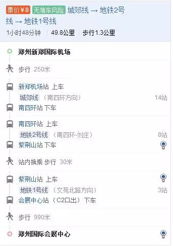從鄭州新鄭國(guó)際機(jī)場(chǎng)至鄭州國(guó)際會(huì)展中心35-40公里左右【打車按最短路程計(jì)算在70元左右】地鐵乘車路線如下:
