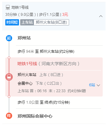 從鄭州火車站至鄭州國(guó)際會(huì)展中心13公里左右【打車按最短路程計(jì)算在25元左右】地鐵乘車路線如下: