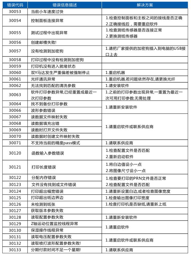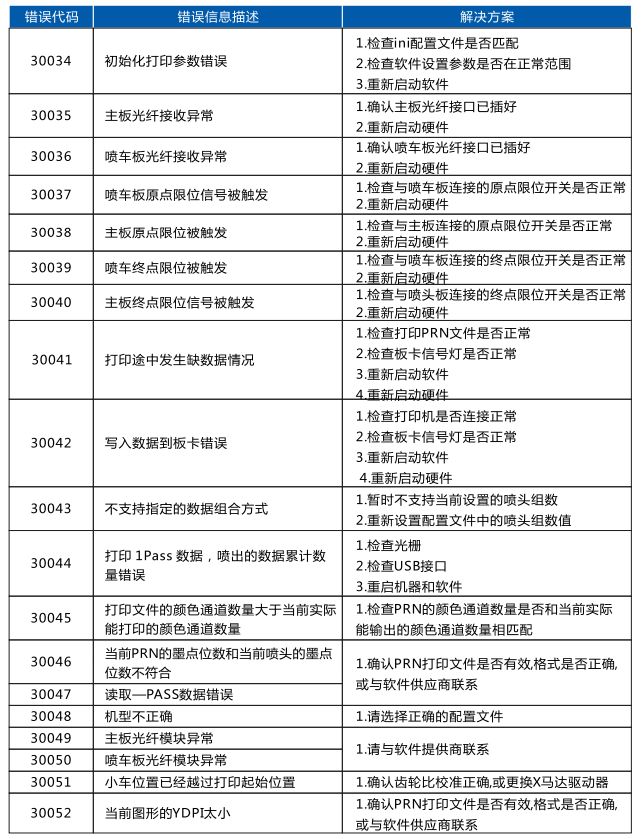 當寫真機使用過程中出現(xiàn)錯誤代碼,大家可以對照表格找到問題的根本原因及解決方法。天彩寫真機用戶在使用設(shè)備過程中,遇到任何技術(shù)問題都可以撥打400-0371-222轉(zhuǎn)技術(shù)服務(wù)咨詢,我們竭誠為您服務(wù)。
