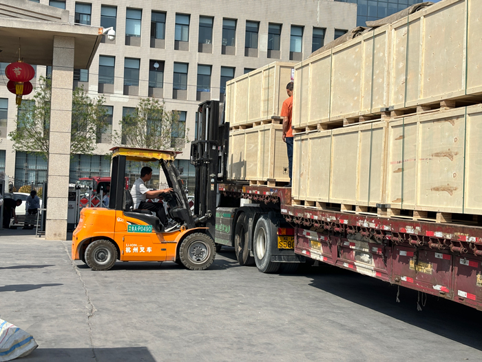一輛17.5米的大貨車被裝的滿滿登登。叉車師傅一次又一次的調(diào)整貨物位置,以確保產(chǎn)品在運輸路上不受損。