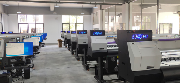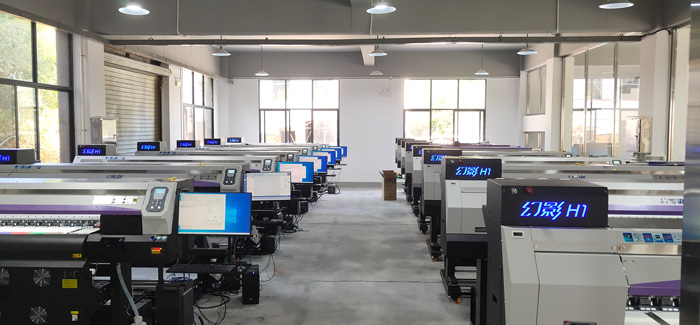 可以看到現(xiàn)場(chǎng)傳回來(lái)的圖片還是很壯觀的,30臺(tái)幻影H1已經(jīng)開(kāi)始投入使用了,這款高端工業(yè)機(jī)型能在4PASS的情況下每小時(shí)生產(chǎn)79平方,十萬(wàn)坊的目標(biāo)就是日產(chǎn)十萬(wàn)平方KT板,甚至更多!