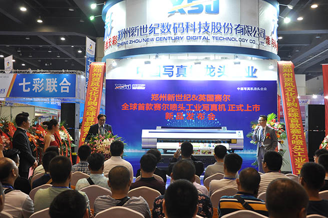 ? ? 8月13日,鄭州新世紀(jì)在鄭州國(guó)際會(huì)展中心召開了新品發(fā)布會(huì),向市場(chǎng)全面推出了賽爾噴頭工業(yè)寫真機(jī)。發(fā)布會(huì)現(xiàn)場(chǎng)邀請(qǐng)到了英國(guó)賽爾公司的老總Mr.Bob 、來(lái)自全國(guó)各個(gè)地區(qū)的代理商、天天廣告的總經(jīng)理、《噴繪&打印》雜志社主編等眾多業(yè)內(nèi)外朋友,在大家的見證下,順利召開了此次新品發(fā)布會(huì)。