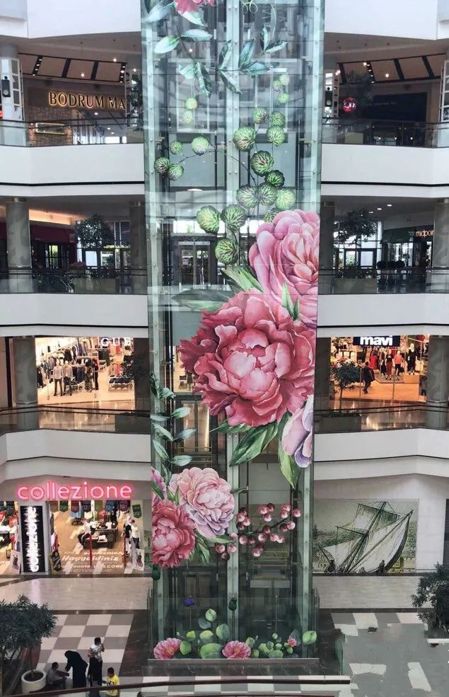 商場觀光電梯超透UV玻璃貼應(yīng)用